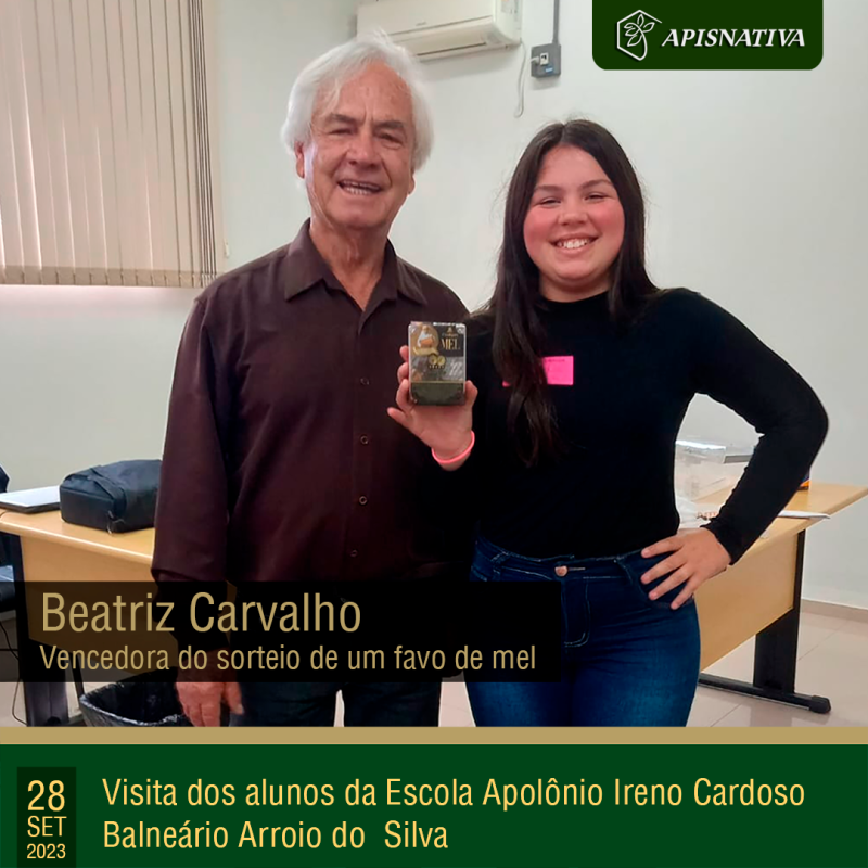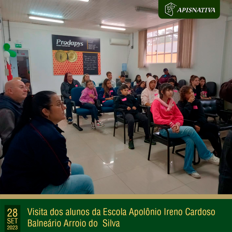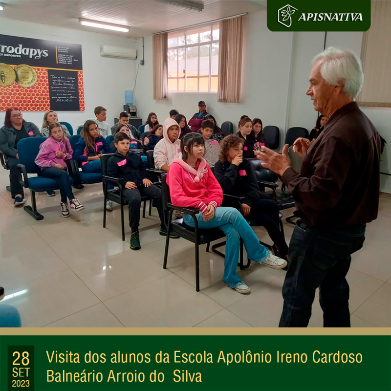 Continuing with the "Sanistarista Jr" project of Cidasc, under the coordination of João Natalino Martins, students and teachers from the Apolônio Ireno Cardoso Basic Education School in Balneário Arroio do Silva came to visit the Apis Nativa facilities and learn about the fascinating world of bees.